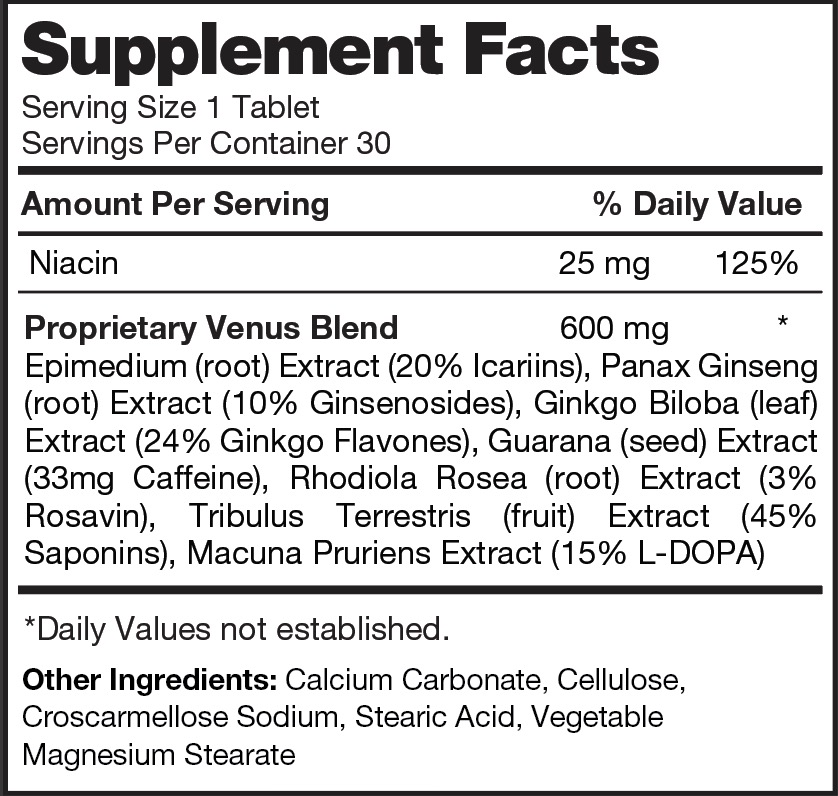 Suggested Use: Take 2 tablets daily with food, 1 – 2 hours before intimacy or as directed by a health care professional.